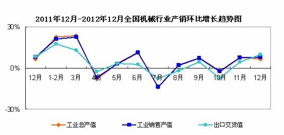 The statistics show that from January to December 2012, the national machinery industrial economic operation speed up continued to show a recovery trend. In December, industrial output value of the cumulative year-on-year growth of 14.24%; industrial sales output value of the cumulative year-on-year growth rate of 14.64%, export delivery value of the cumulative year-on-year growth rate of 3.26%.