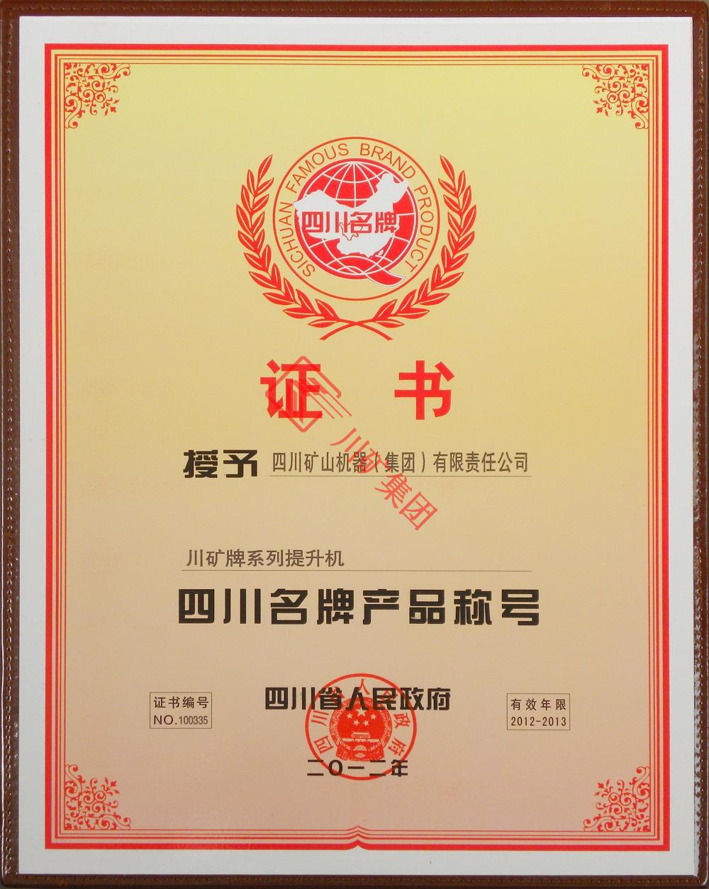 • 四川名牌產(chǎn)品稱(chēng)號(hào)